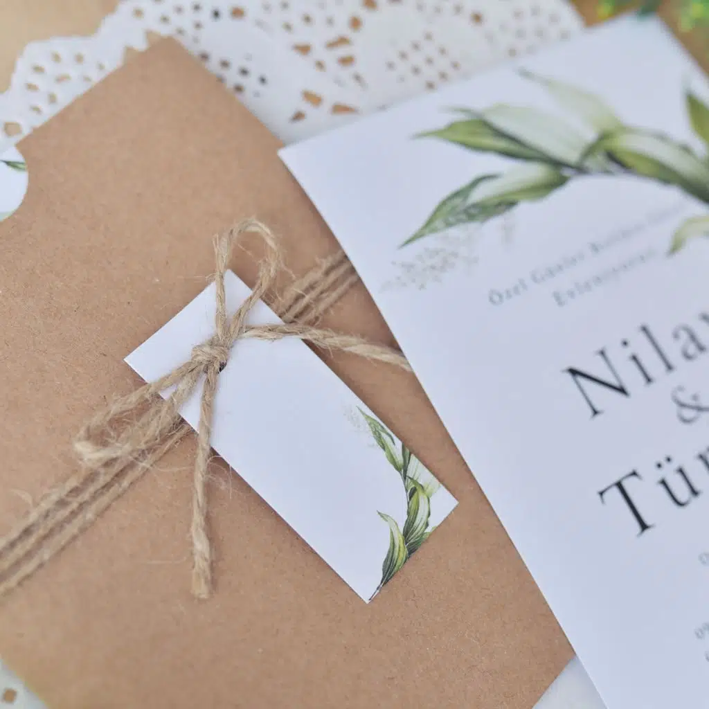 - Kraft ipler her davetiye için kesilmiş halde gönderilir ve bağlaması çiftimize aittir.