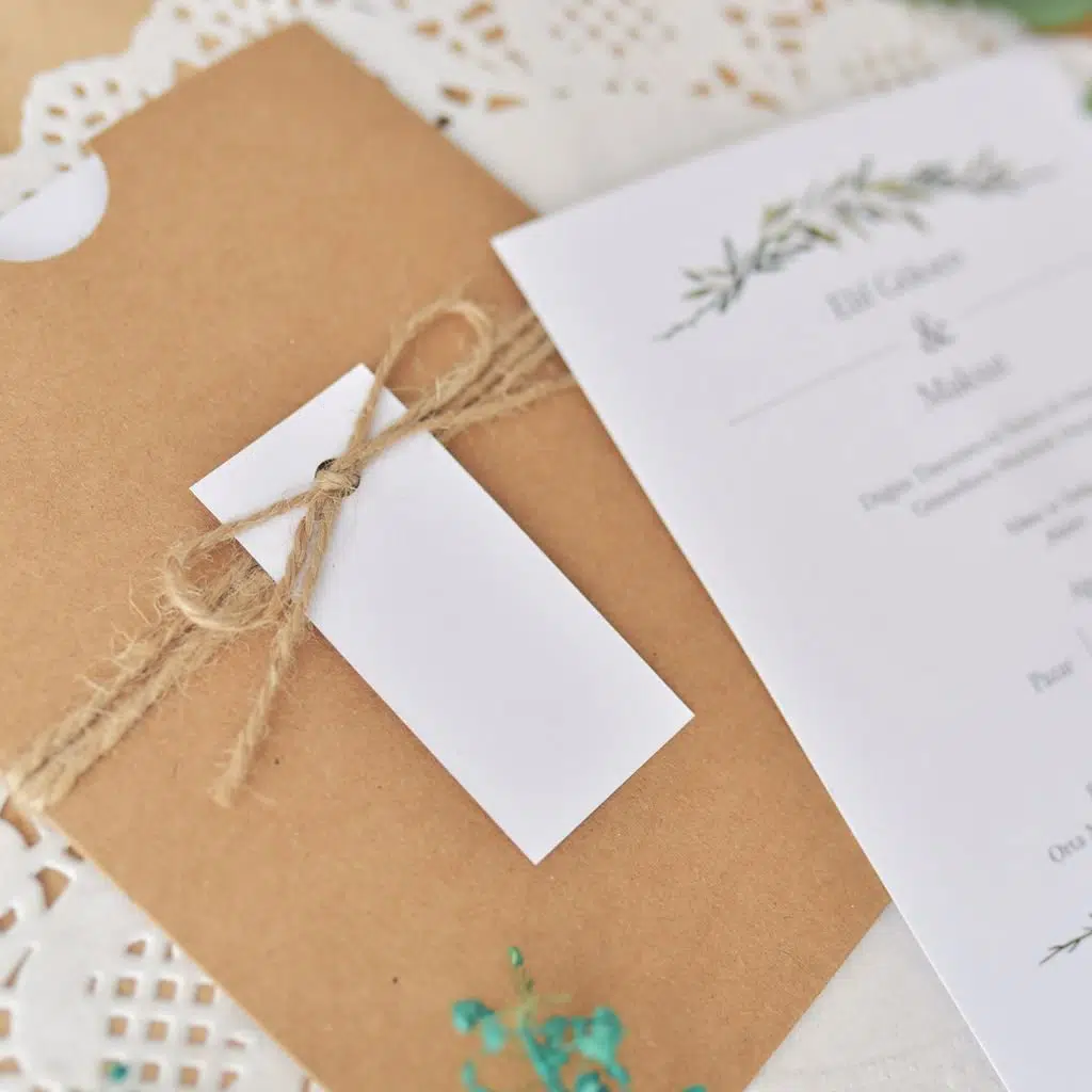 • Kraft ipler her davetiye için kesilmiş halde gönderilir ve bağlaması çiftimize aittir.