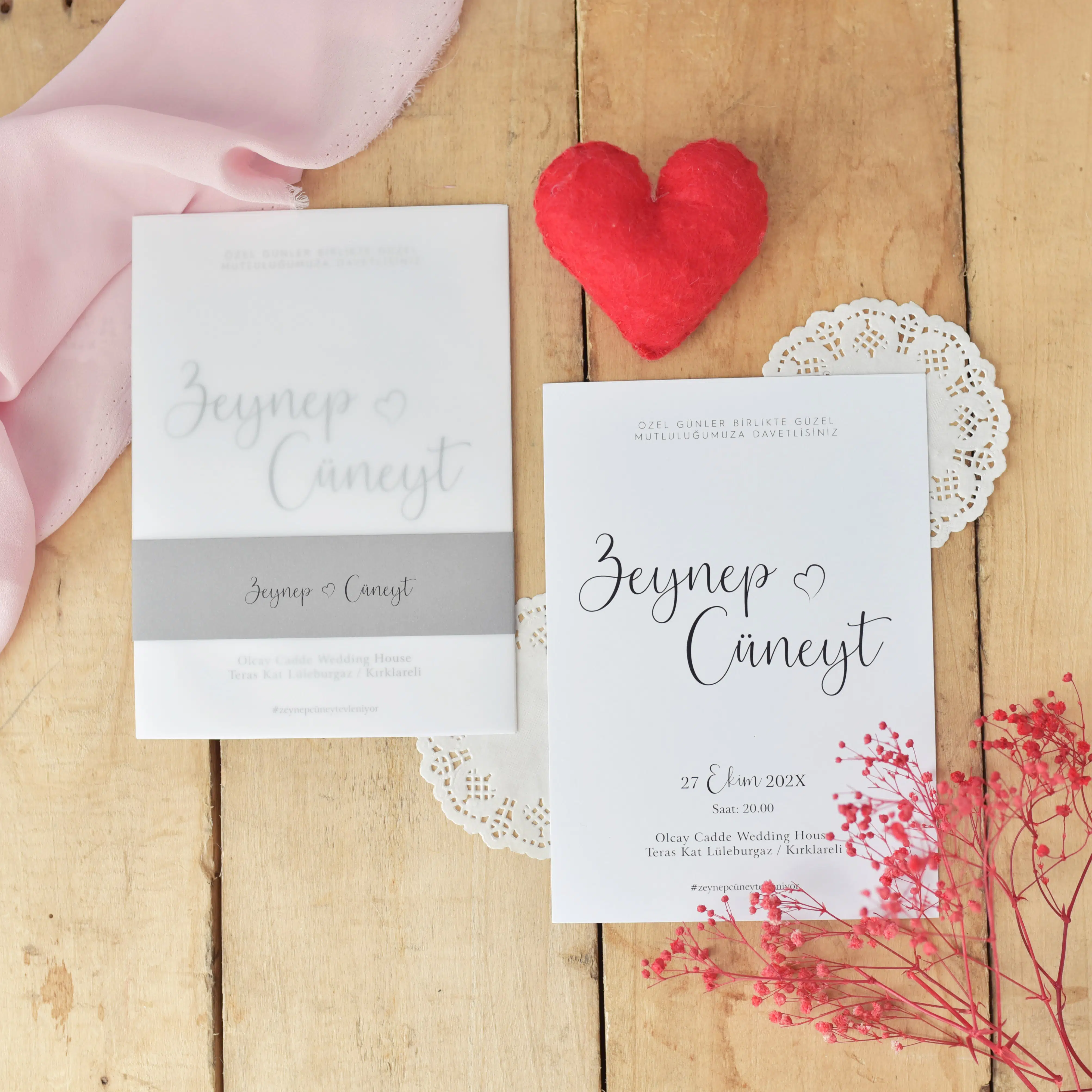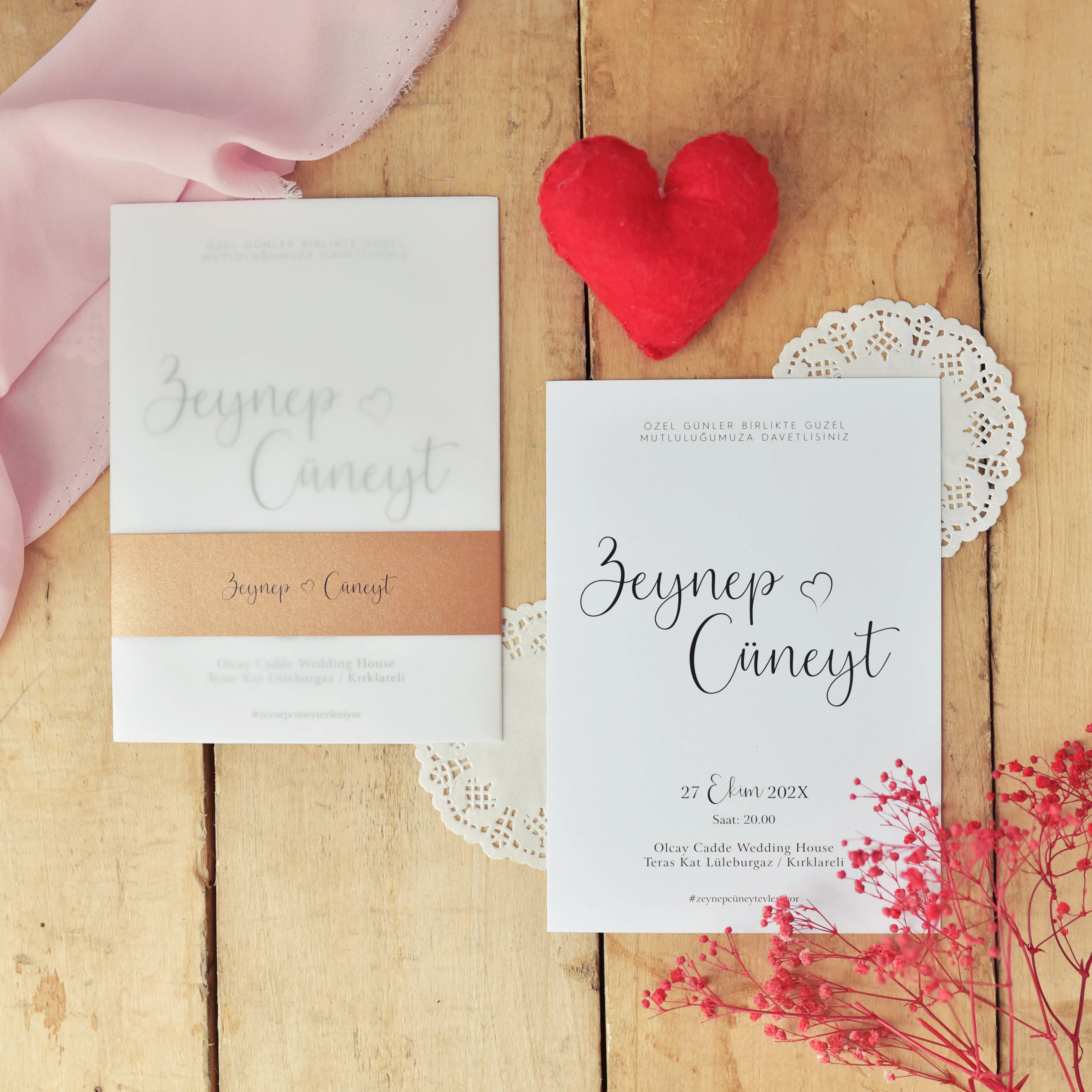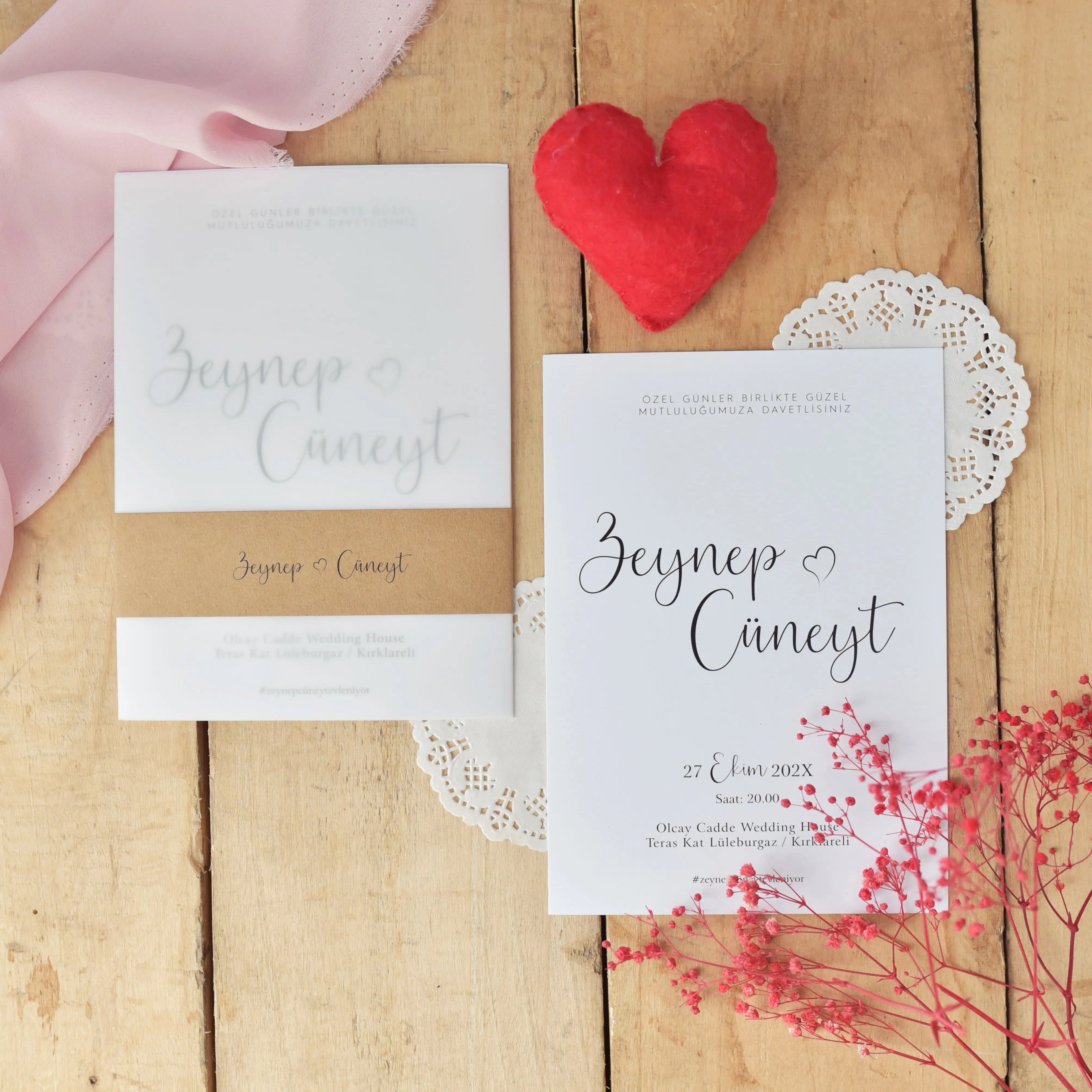 • Bilgilerinizle davetiyeniz tasarlanıp tarafınıza whatsApp üzerinden gönderilecek olup, onayınız olmadan baskısı yapılmayacaktır.