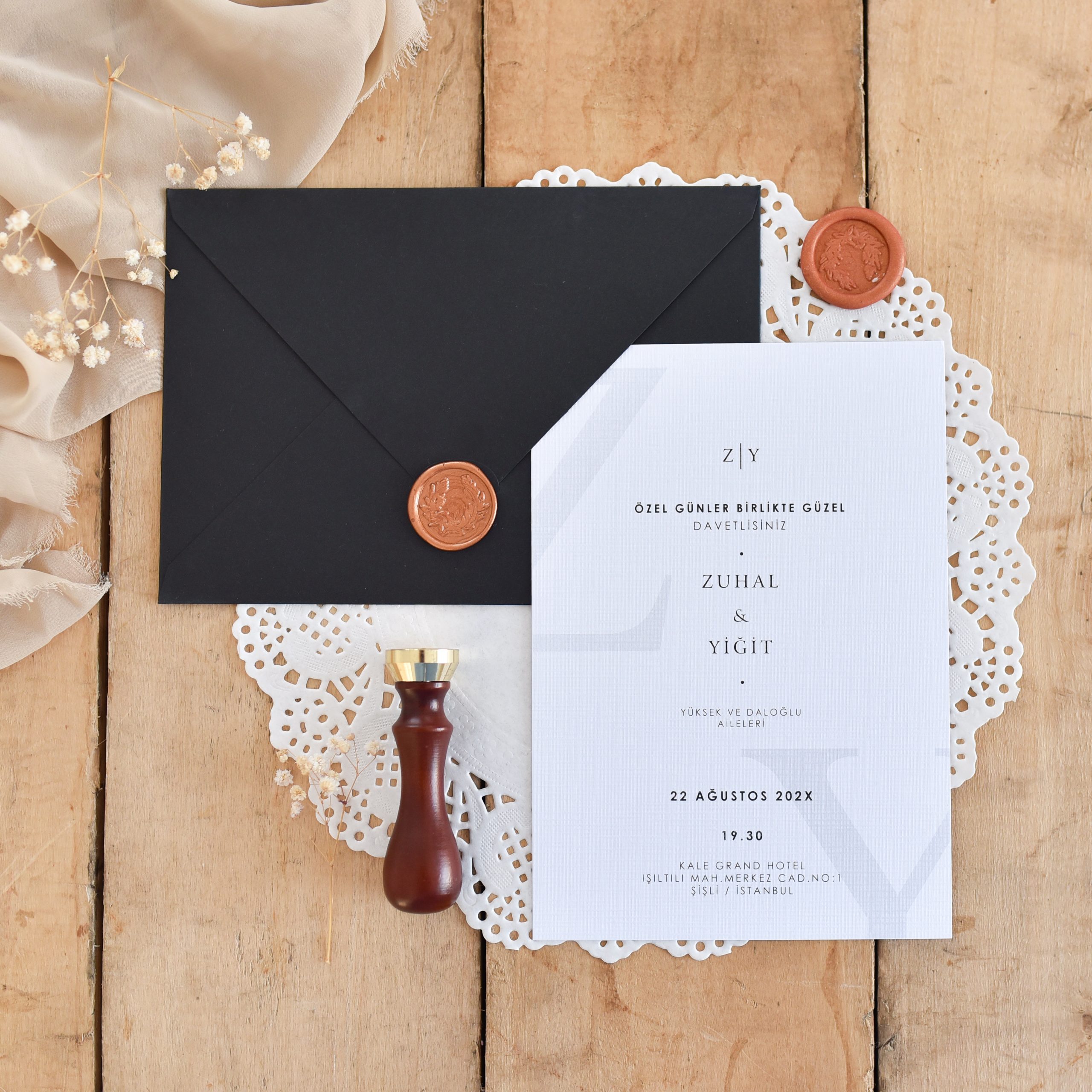 • Bilgilerinizle davetiyeniz tasarlanıp tarafınıza WhatsApp ile gönderilecek olup, onayınız alınmadan baskı işlemi yapılmayacaktır.